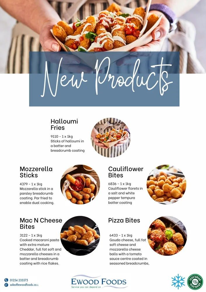 At Ewood Foods, we’re always adding fresh ideas to our range, ensuring you can keep your menus exciting and up to date. Our latest additions include innovative ambient, chilled, and frozen products, as well as new desserts, drinks, and non-food essentials to meet the needs of every sector we serve.